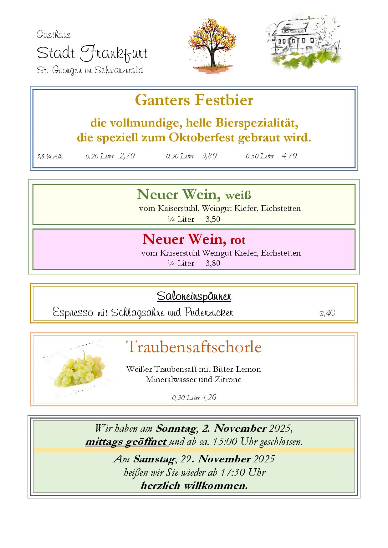 Für Familienfeiern und Trauerfeiern haben wir nachmittags auf Anfrage, ab 15 Personen, bei rechtzeitiger Reservierung geöffnet.